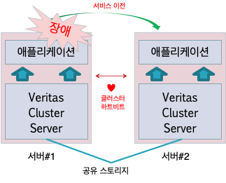 - 디스크 공유도 마찬가지인데 Veritas CFS(Cluster File System) 등으로 구성할 수 있다. 이러한 구성은 특정기기 장애시 1번 또는 2번 서버등으로 서비스를 지속 운영할 수 있다는 장점이 있고 Down Time이 존재하지 않음